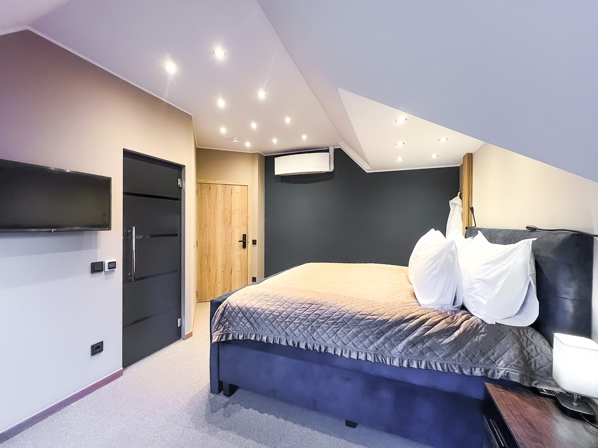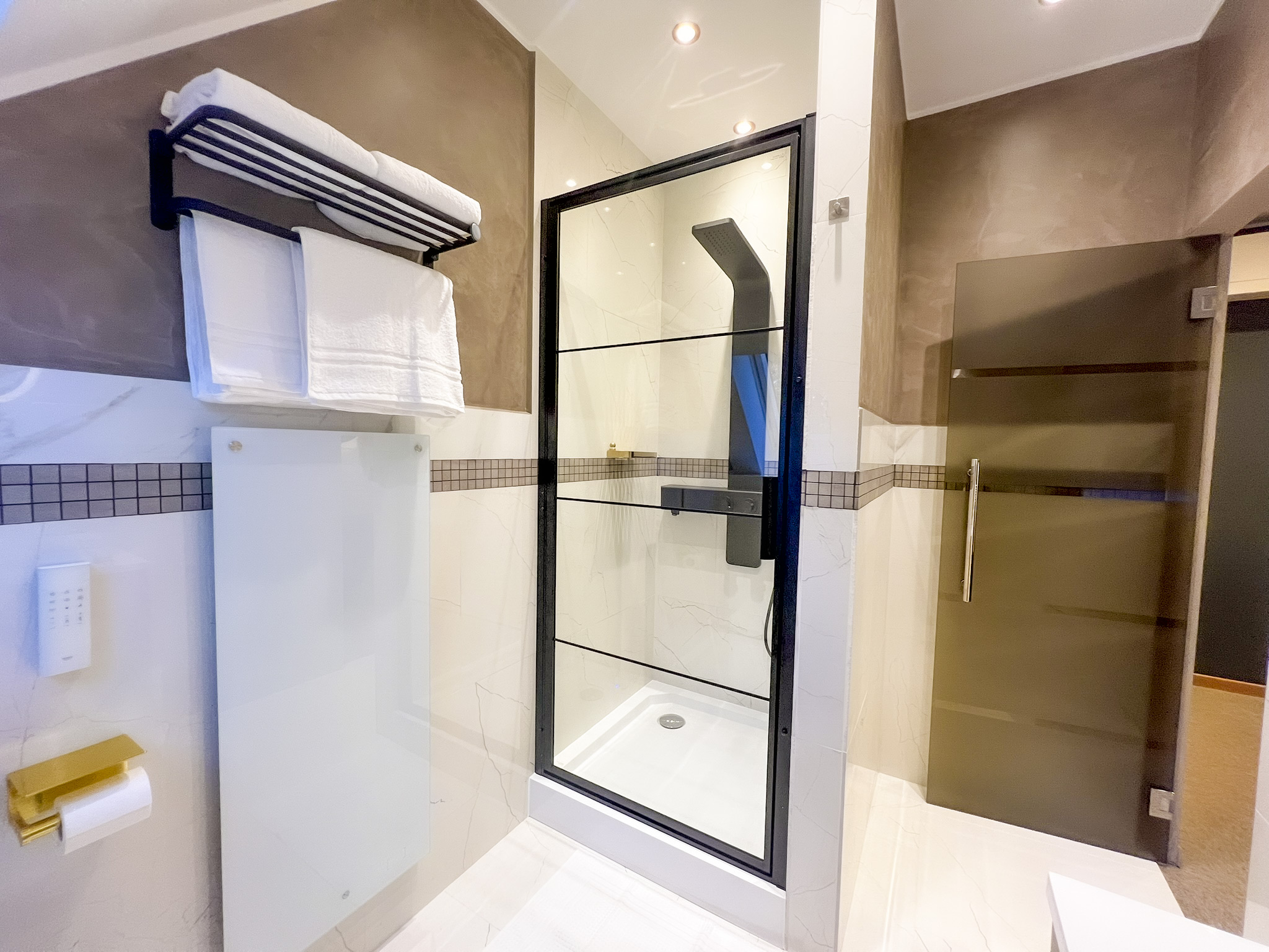 Onze comfortabele standaardkamer is uitgerust met alle voorzieningen die je nodig hebt. Geniet van een ontspannende douche met watermassage. Toegang tot ons wellnesscomplex met zwembad en sauna is natuurlijk inbegrepen bij uw kamer.